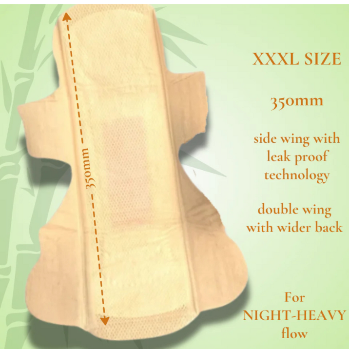 Jiswap Bamboo Fiber 100% Natural Organic – Chemical & Rash Free Sanitary Pad, XXXL-Size (Pack of 40)