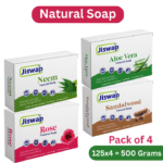 1 review for Jiswap Natural Handmade Soap | Reduces Tanning & Enhances Skin Texture | Infused with Essential Oils for Glowing Skin (Rose, Sandolwood ,Neem , Aloe vera) (125grm each (Pack of 4)